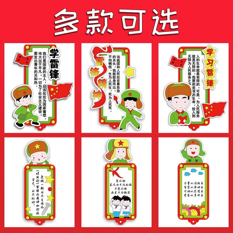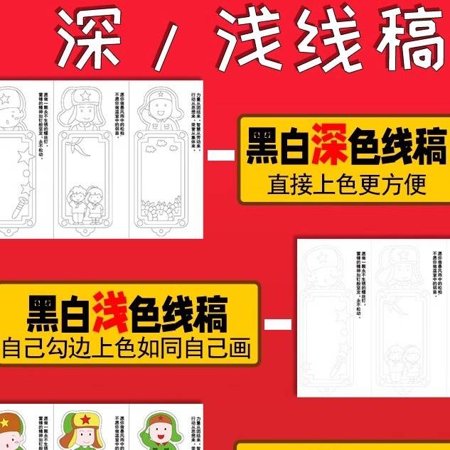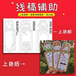 学雷锋树新风语录涂色手工diy书签创意空白材料包线稿半成品装 饰