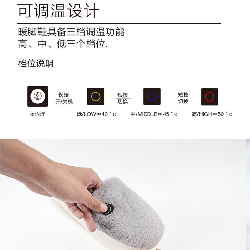 冬充电加热新款 暖脚神器发热鞋 男士 家居室内电热保暖棉鞋 女式 拖鞋