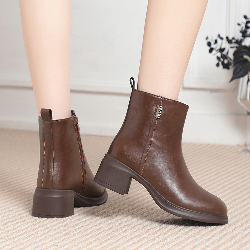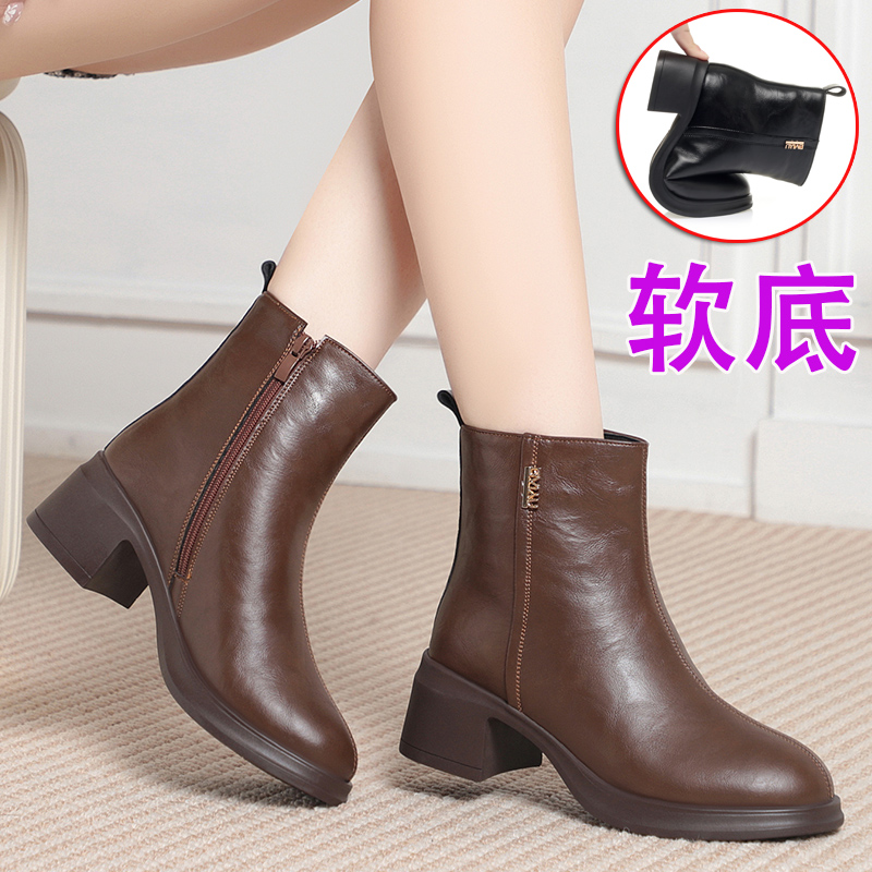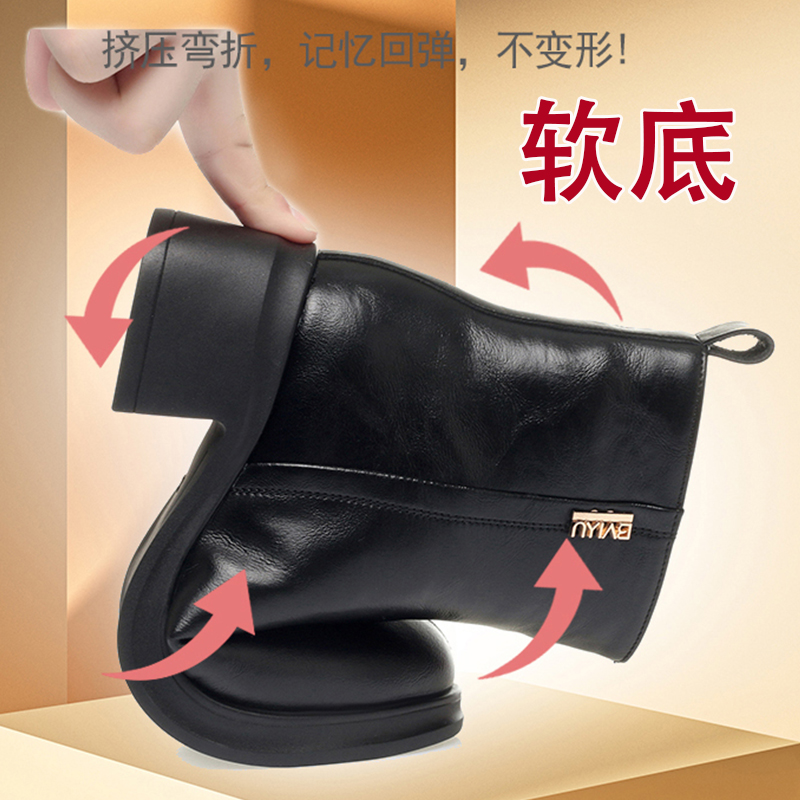 粗跟软底大码 名牌时尚 加绒保暖羊毛棉鞋 冬季 41女短靴子 妈妈高跟鞋
