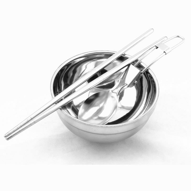不锈钢勺子筷子碗 餐具旅行户外学生小巧便携式 双人碗包套装 折叠式