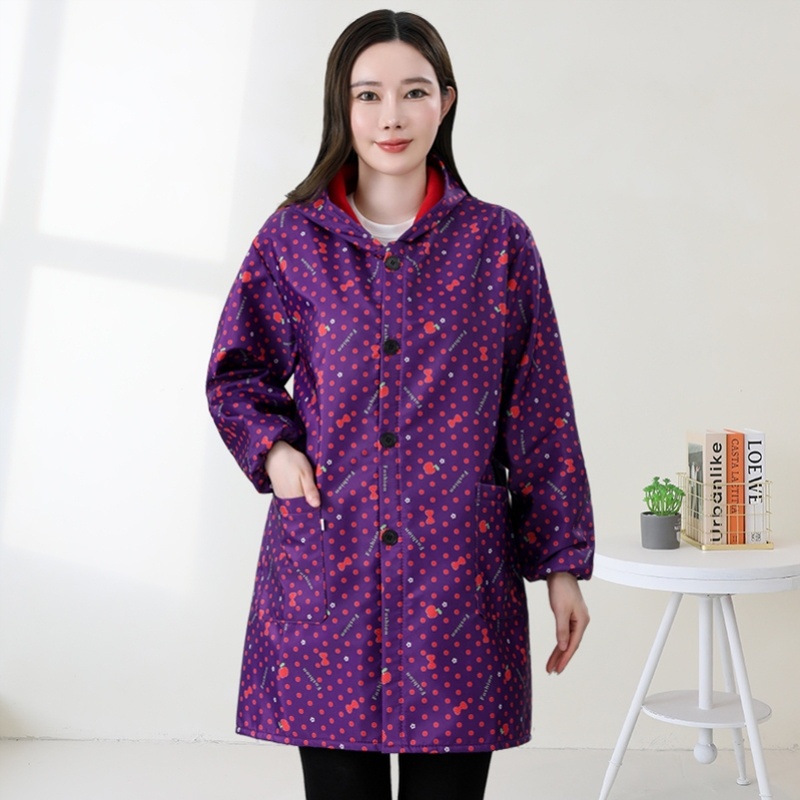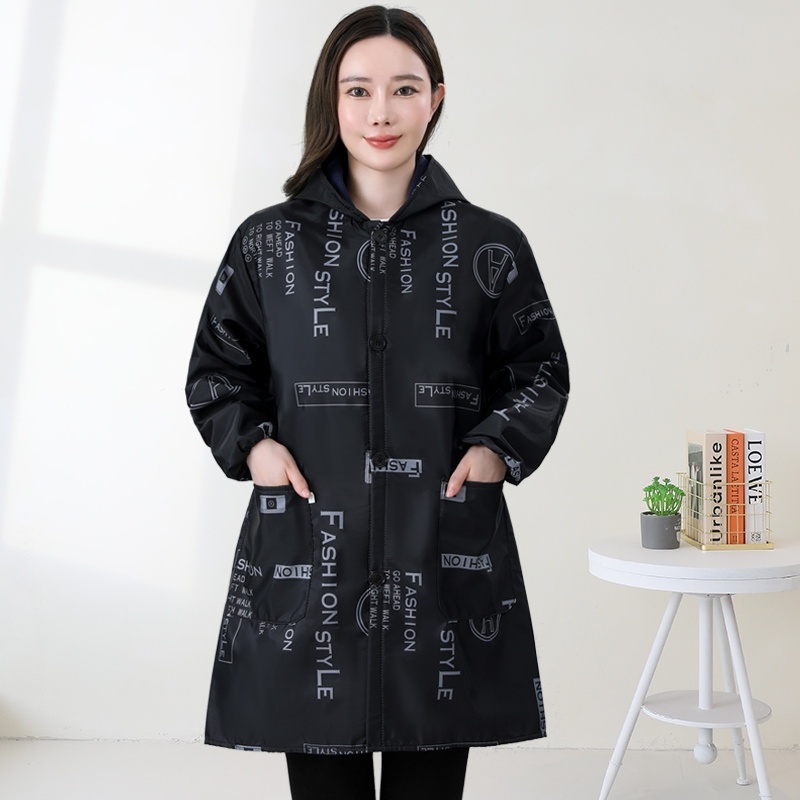 女士冬天加绒加厚上衣围裙厨房防水防油带袖 中长款 子 罩衣长款 男士