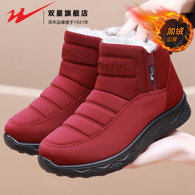 保暖雪地靴百搭加绒东北靴子棉鞋 骆驼新款 女厚底 香菇双十一