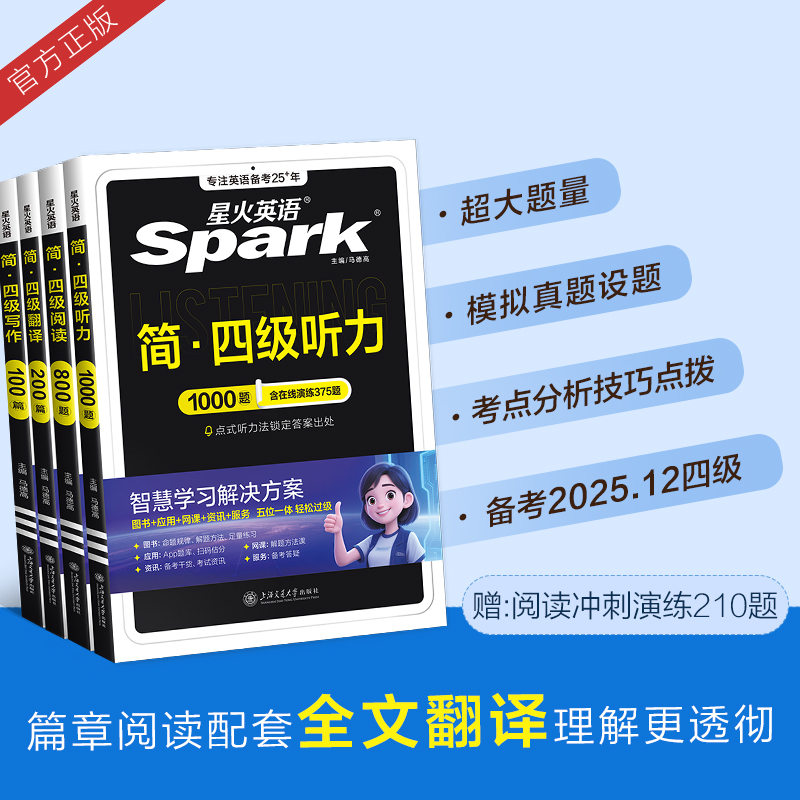 星火英语四级英语考试真题备考2025年12月四级真题试卷通关学习资料大学英语cet4四六级词汇单词书阅读听力作文翻译专项训练模拟题