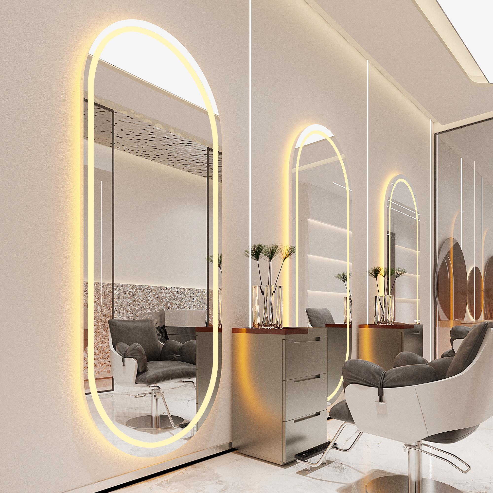 网红发廊专用新款 铝合金镜台理发店高级感镜子落地镜美发店专用镜
