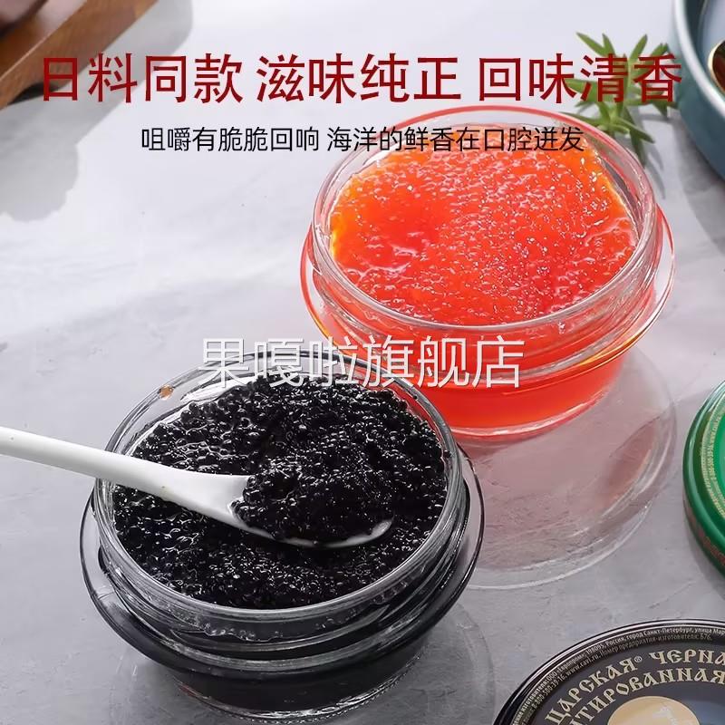 进口俄罗斯黑鱼子酱鲟鱼大马哈红鱼籽酱105g日韩寿司料理西餐沙拉