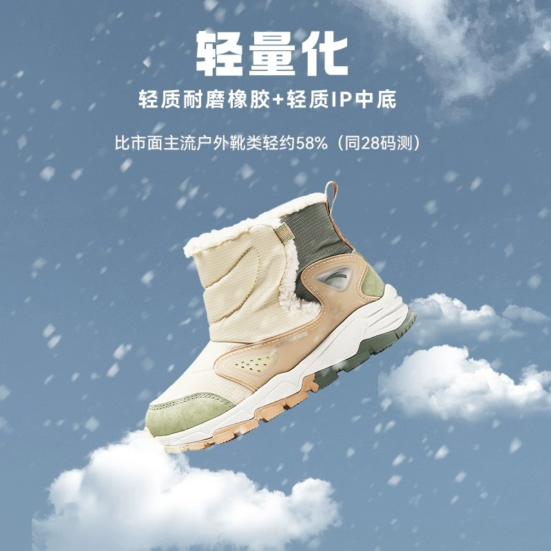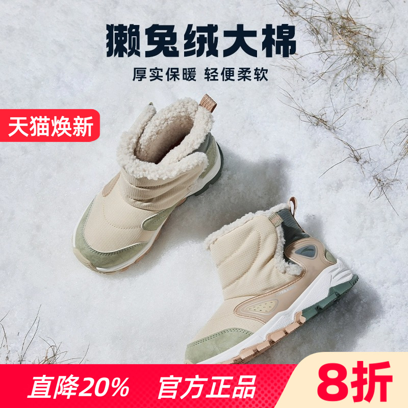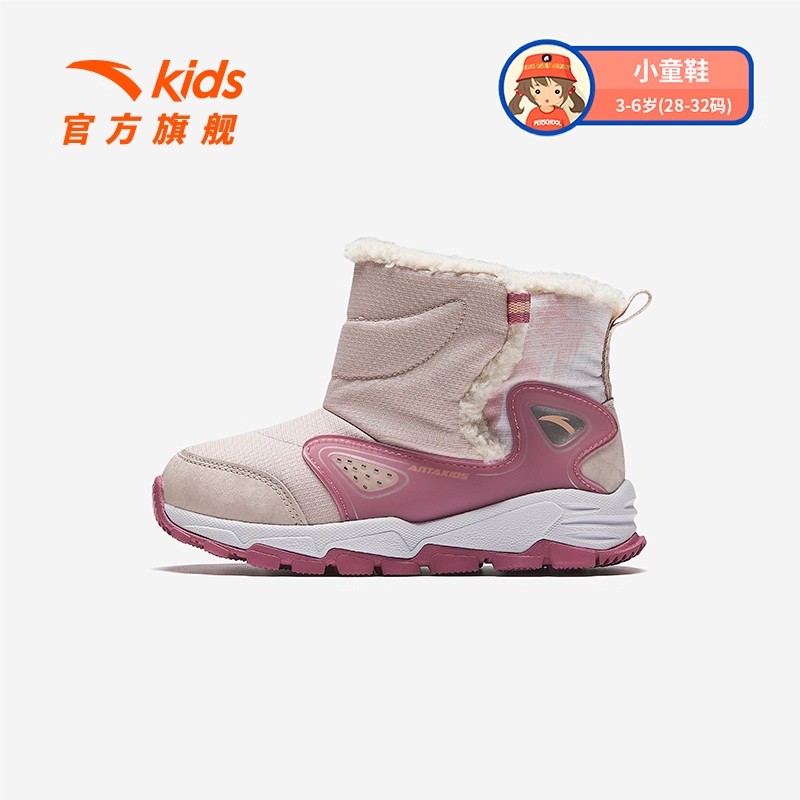 女宝加绒保暖宝宝靴子大棉鞋 安踏儿童女小童雪地靴户外童鞋 冬季