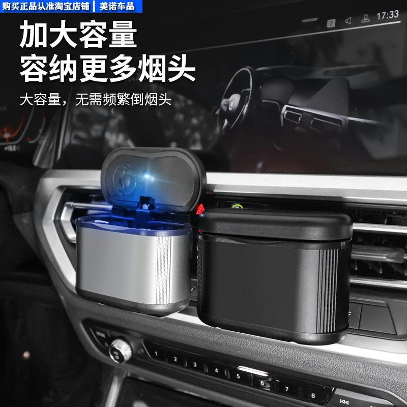 车载烟灰缸门边粘贴式 出风口夜光男 可拆卸汽车用烟缸多功能悬挂式