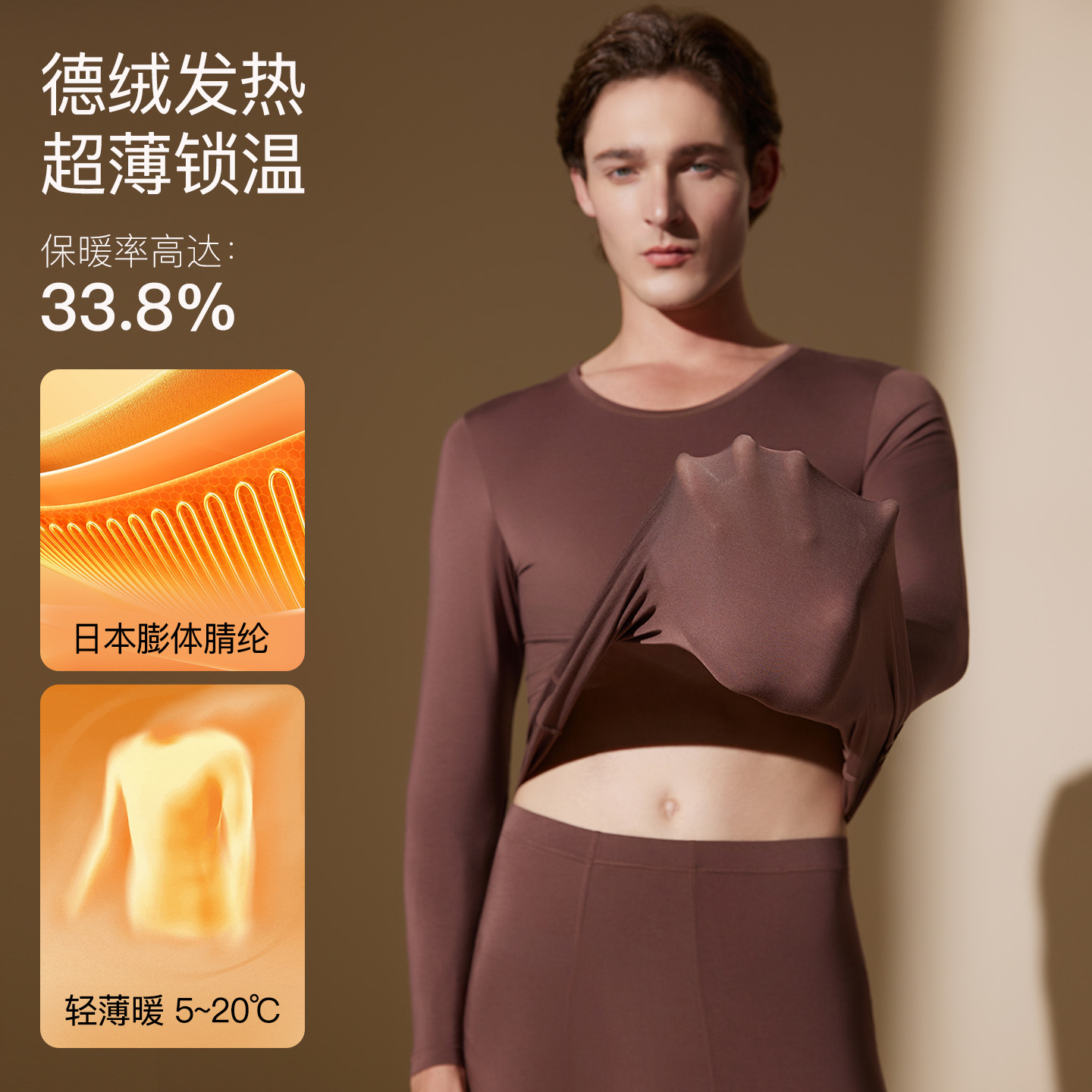 内穿打底上衣 男秋衣秋裤 2025冬石墨烯自发热德绒保暖内衣长袖 套装