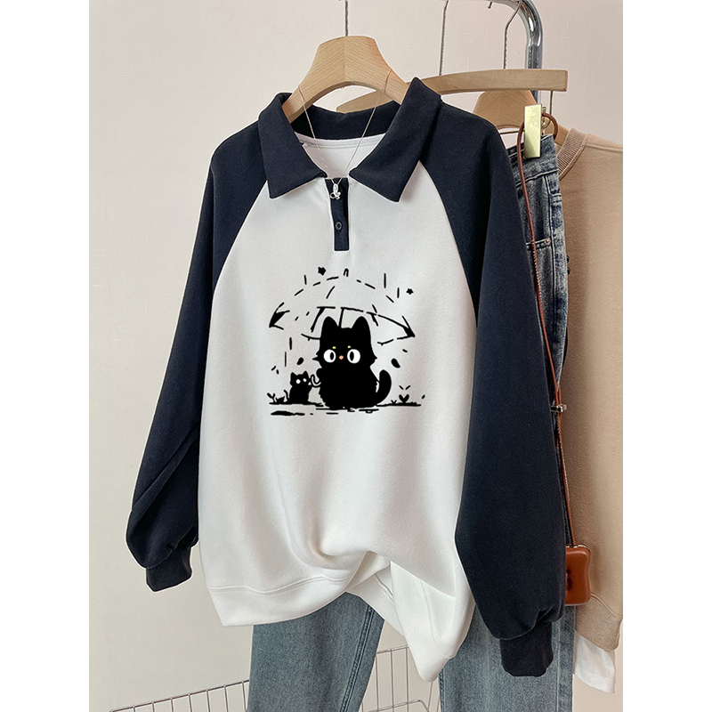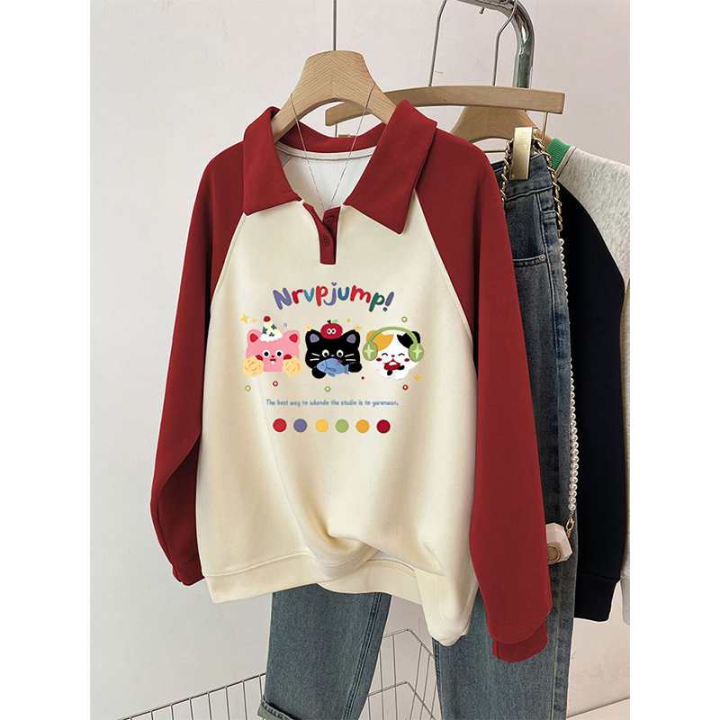韩系polo翻领秋冬宽松oversize慵懒风遮屁股卫衣女大码 胖mm上衣服