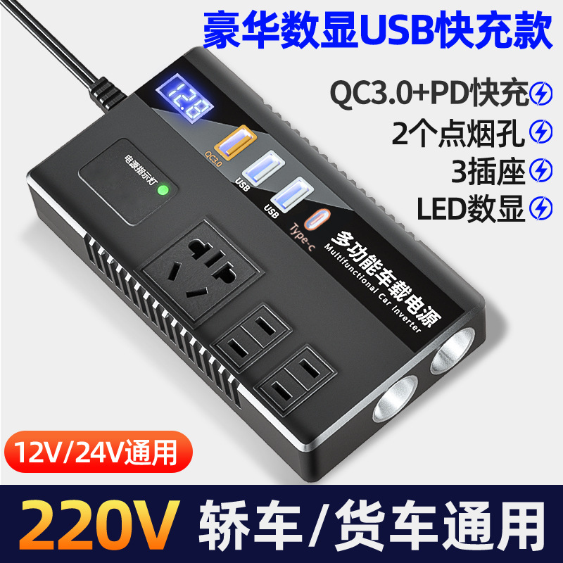 车载充电器手机超级快充头点烟器一拖二转换插头车充插座汽车接口
