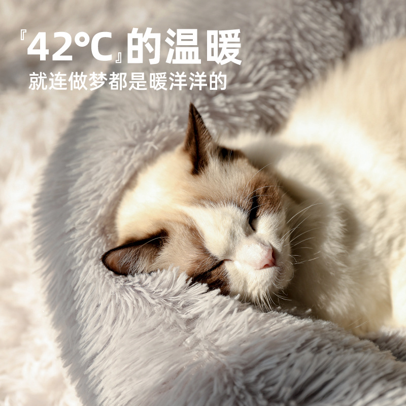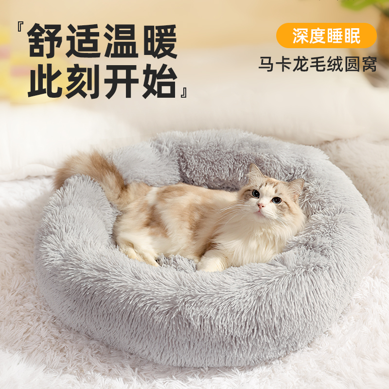 冬季 猫窝狗窝猫咪睡觉 保暖长毛绒狗狗宠物窝圆形毛绒猫咪窝秋冬款
