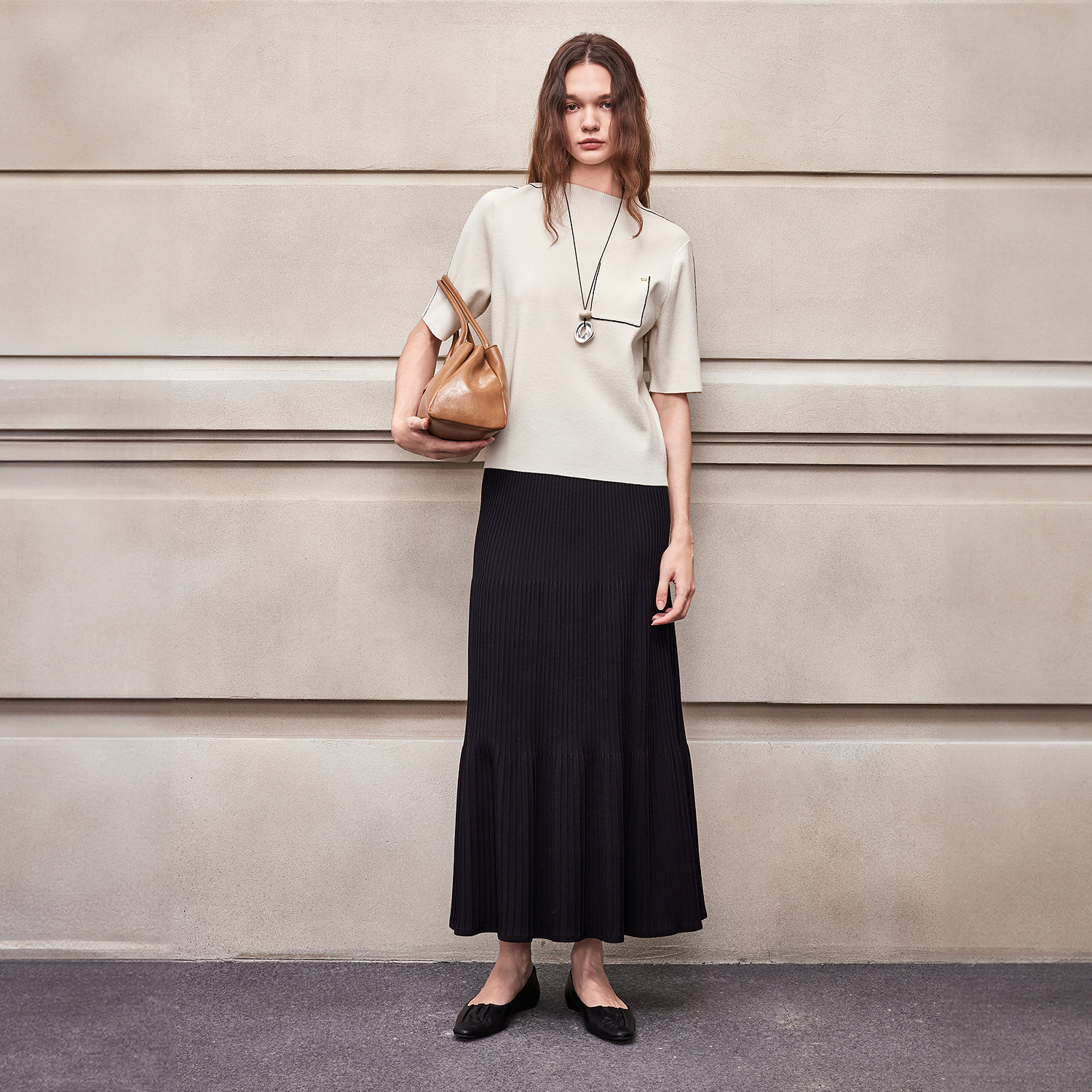设计感直筒女半身裙长裙 流行简约优雅百搭经典 BCBG25早秋新款 时尚