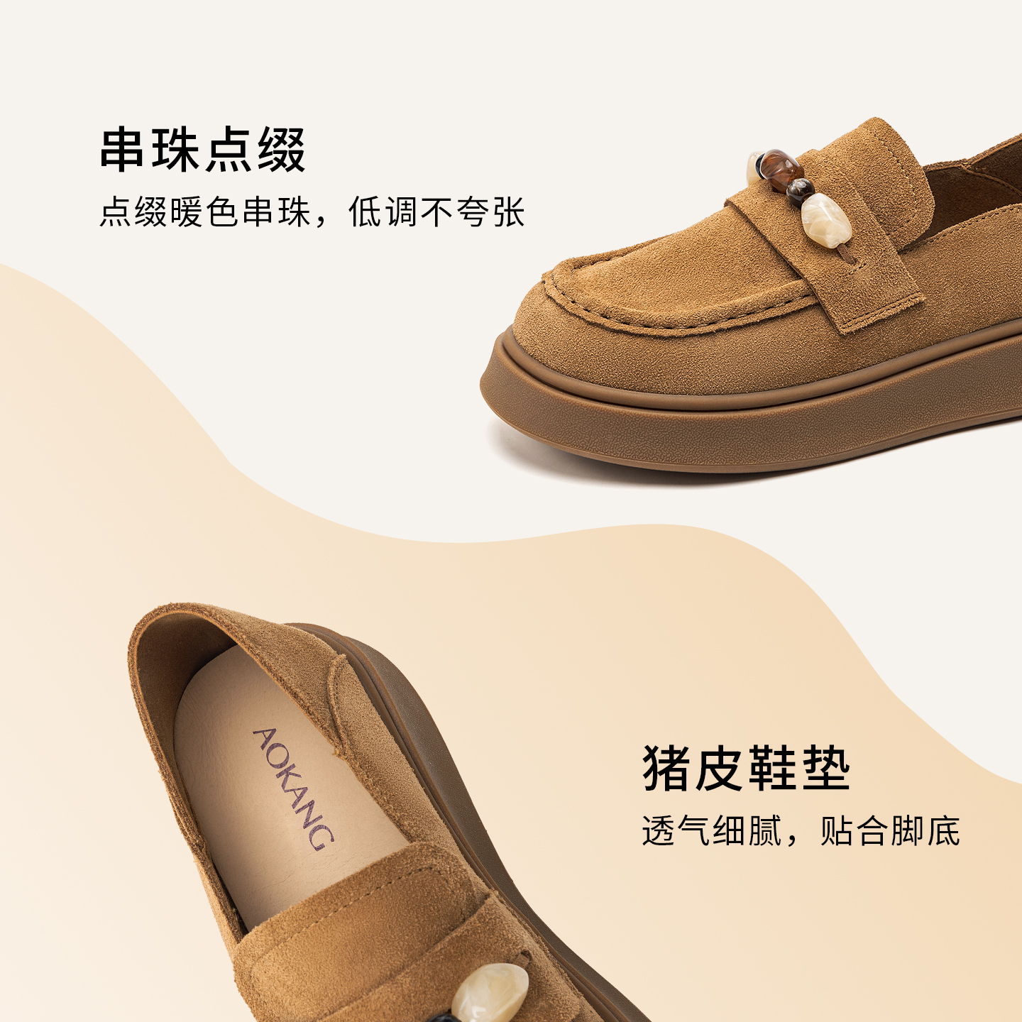 真皮全包珠串文艺风两穿一脚蹬休闲鞋 奥康 勃肯鞋 2025秋季 女鞋