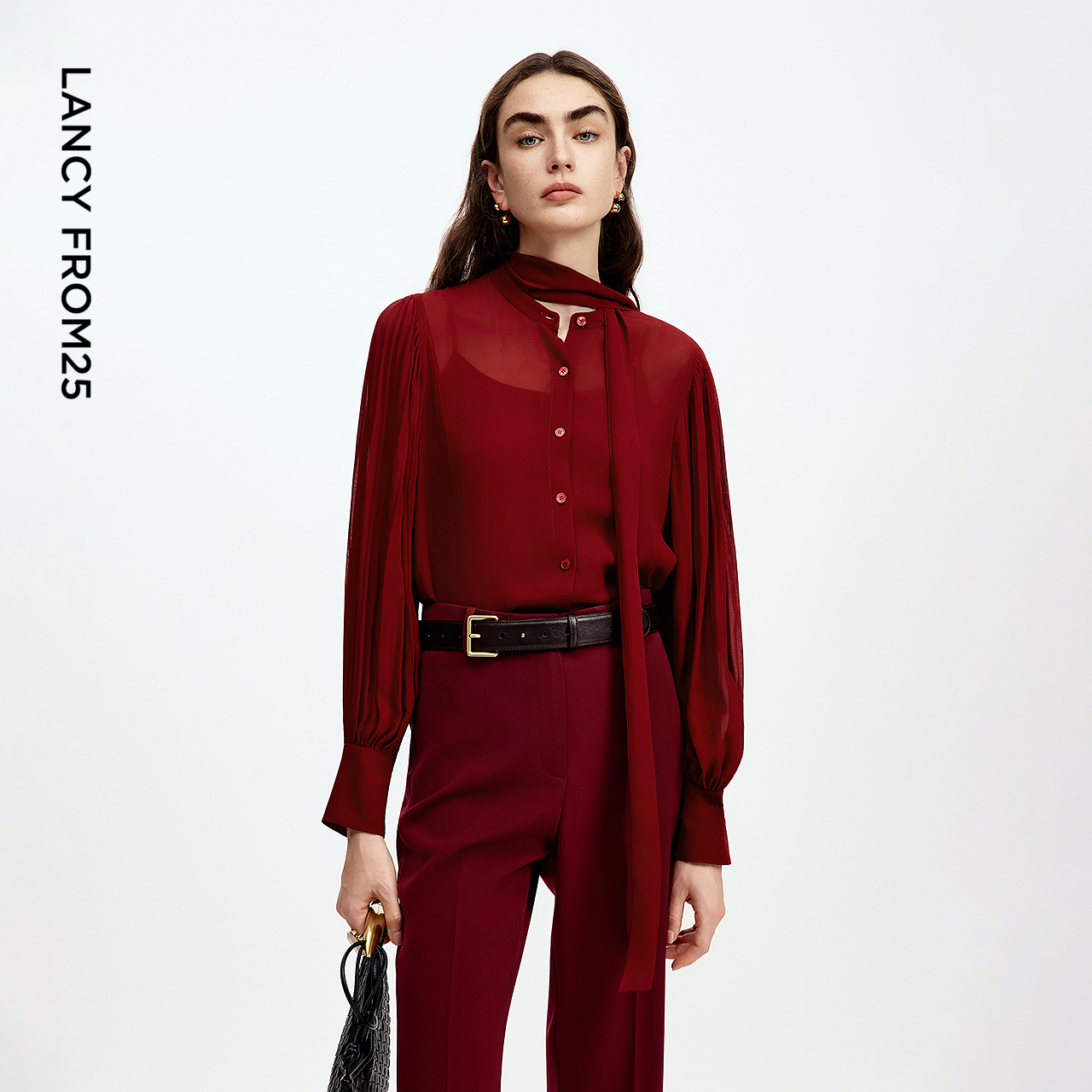 新款 通勤上衣2025年秋季 设计感复古灯笼袖 朗姿气质可拆卸飘带衬衫