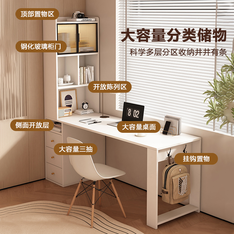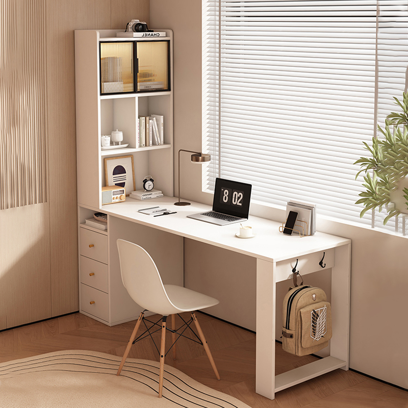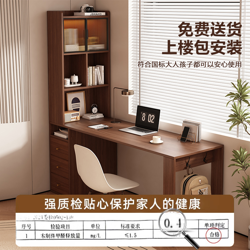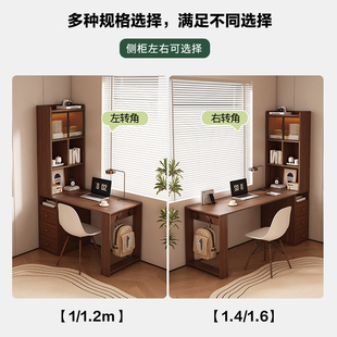 实木转角书桌书架一体桌卧室拐角电脑桌书柜组合写字台家用办公桌