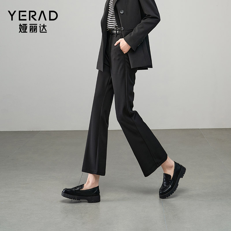 女秋季 喇叭裤 休闲裤 子2025新款 黑色小个子裤 娅丽达通勤高弹微喇裤