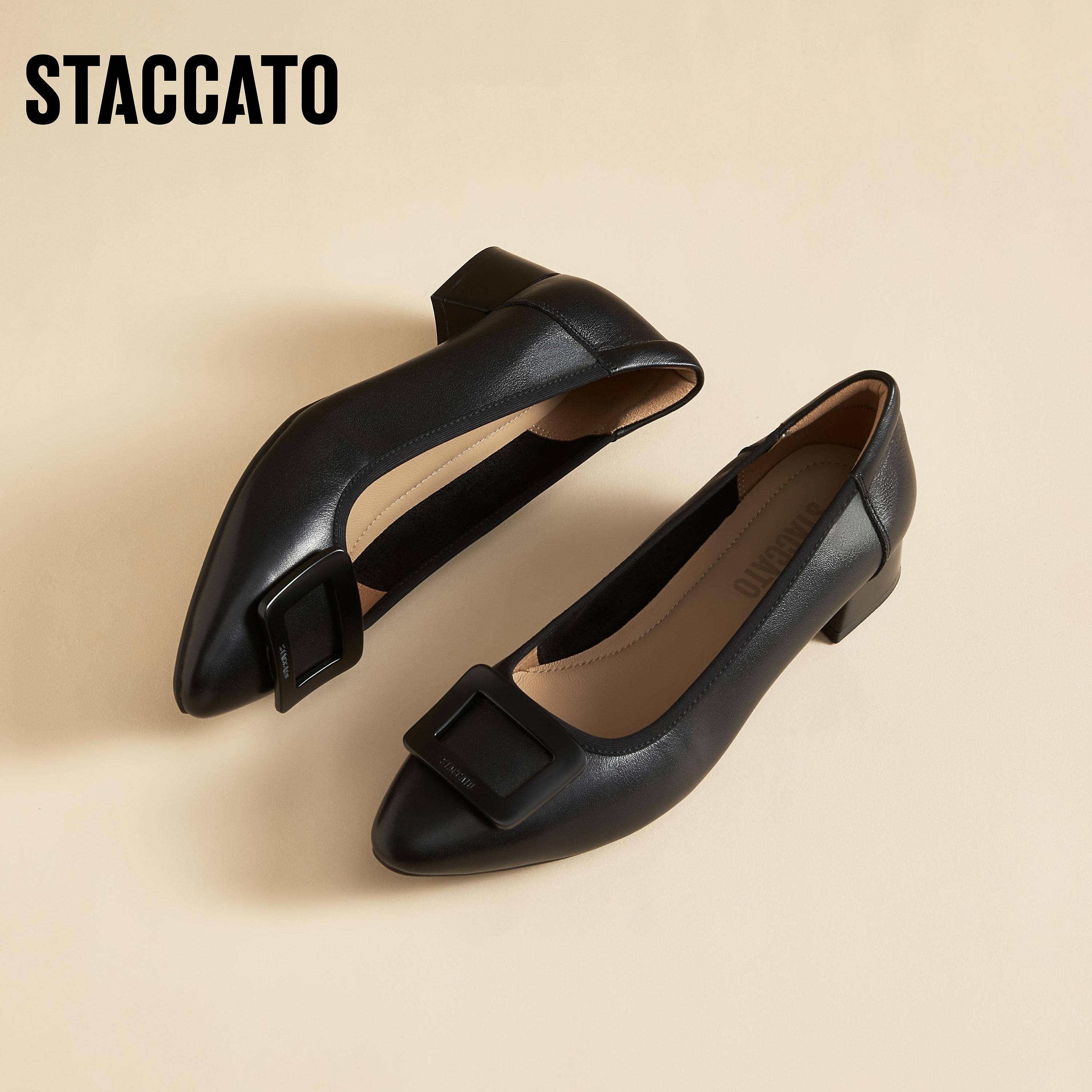 新款 康莉春季 高跟单鞋 女方头真皮通勤时尚 子 方扣浅口鞋 博主推荐
