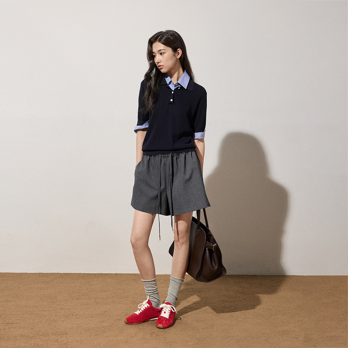 新品 子休闲宽松显瘦2025秋季 女裤 OCHIRLY欧时力弹力抽绳直筒短裤