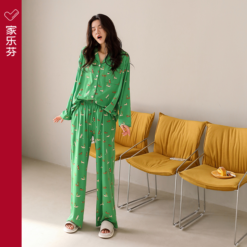 莫代尔长袖 套装 长裤 开衫 家居服休闲卡通大码 家乐芬睡衣女士春秋款