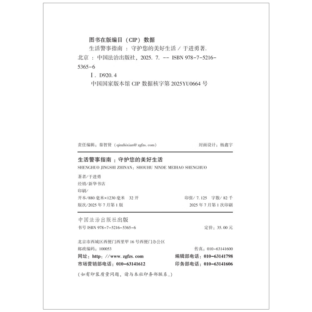 美好生活 于进勇 著 正版 社 守护您 中国法治出版 9787521653656 生活警事指南
