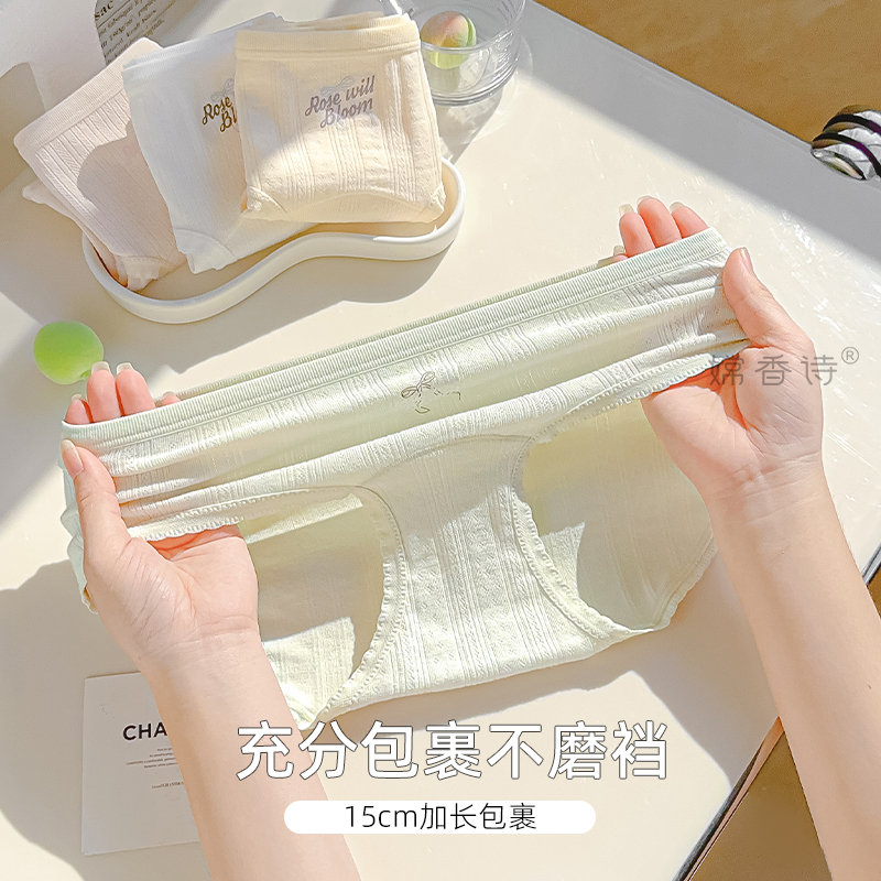 纯棉裆抗菌中腰全棉质大码 夏季 无痕女士内裤 少女三角裤 4条装
