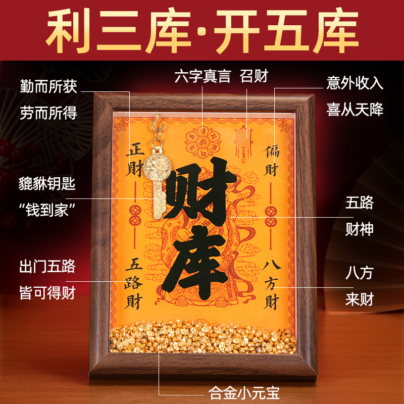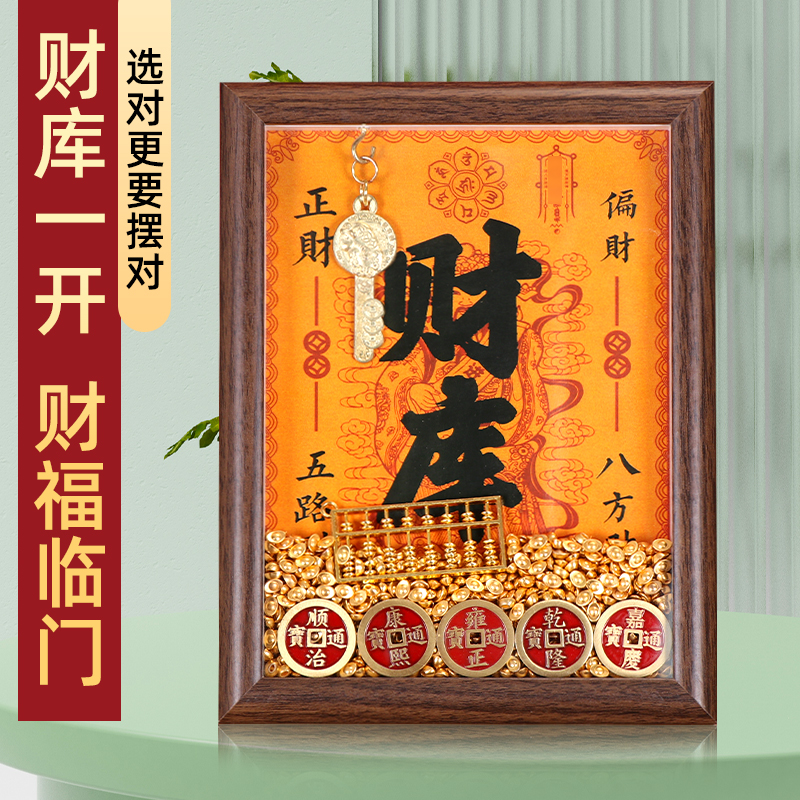 2025年财库摆件相框五路财神黄财神爷客厅玄关办公室开财补库套装