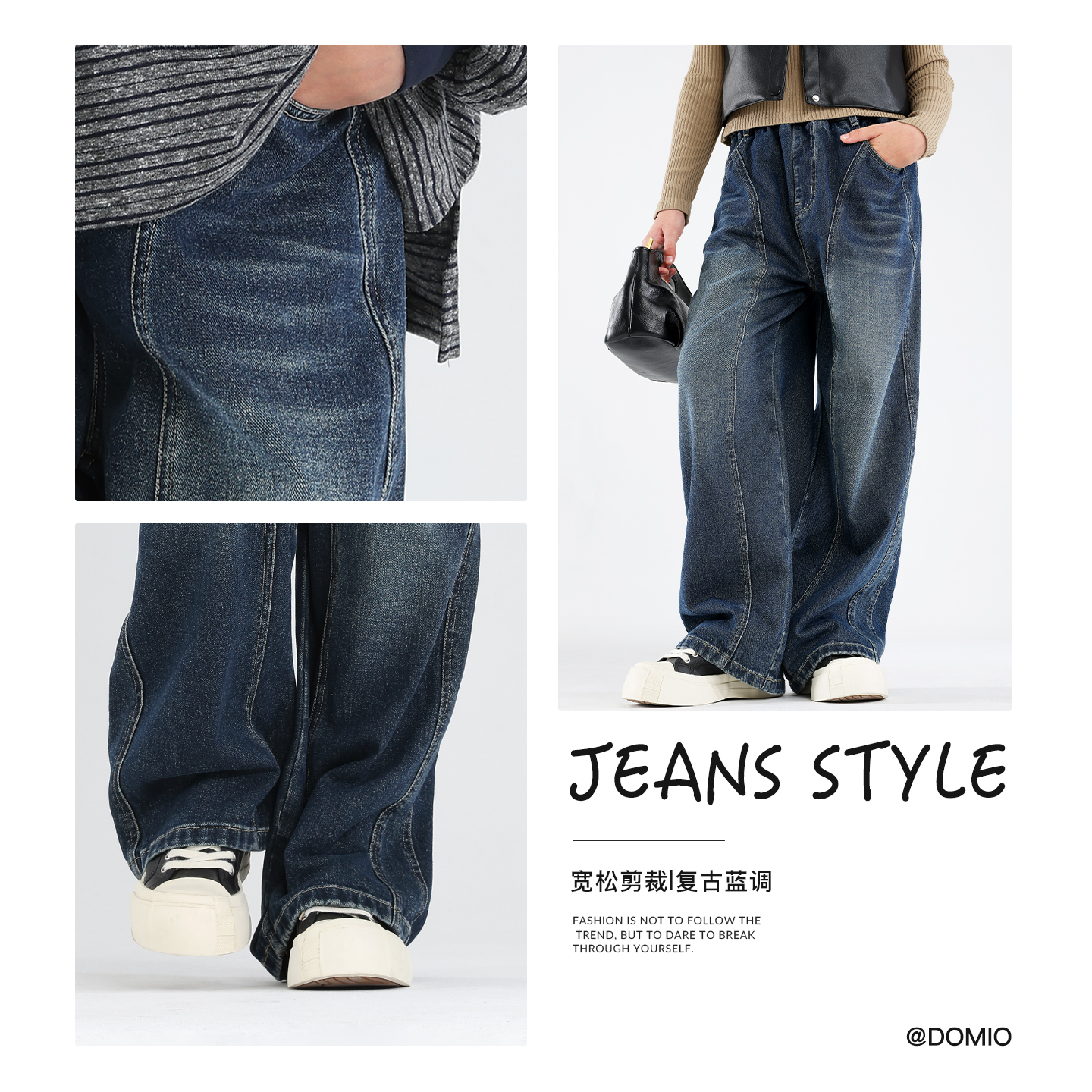 女童裤 儿童裤 子2025秋冬新款 牛仔裤 子 中大童直筒阔腿裤 植木童装