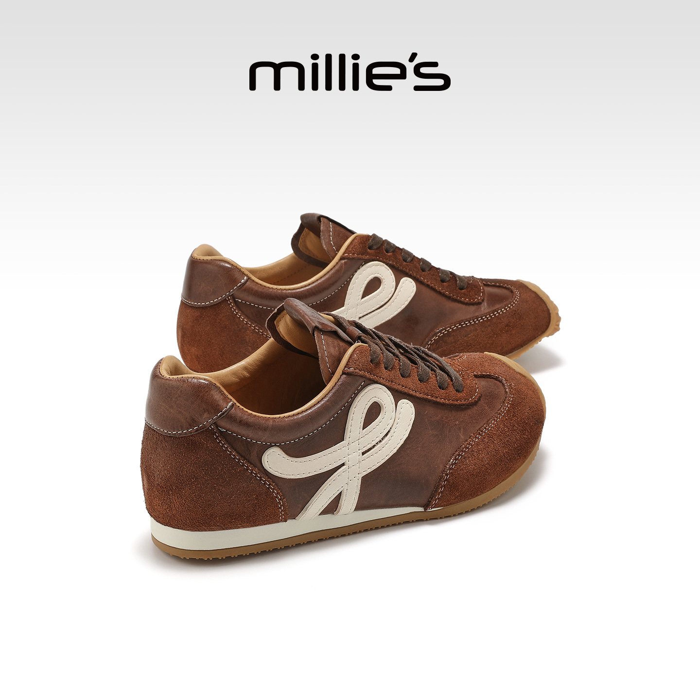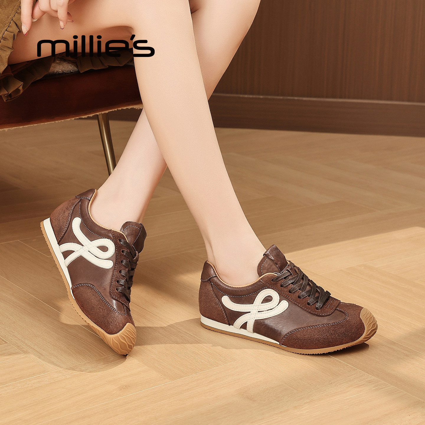 厚底透气轻便休闲阿甘鞋 millies妙丽德训鞋 新款 真皮2025秋季 女款