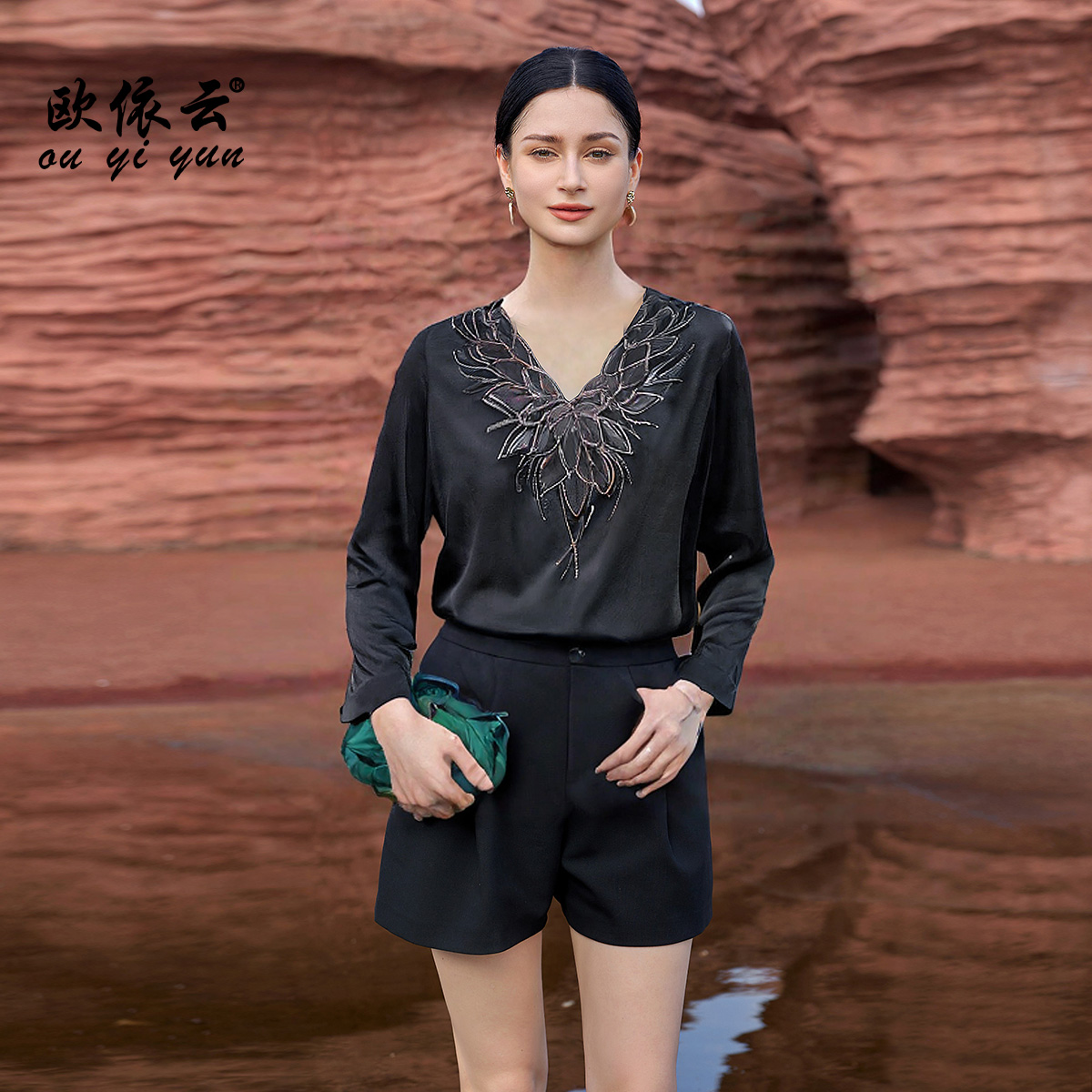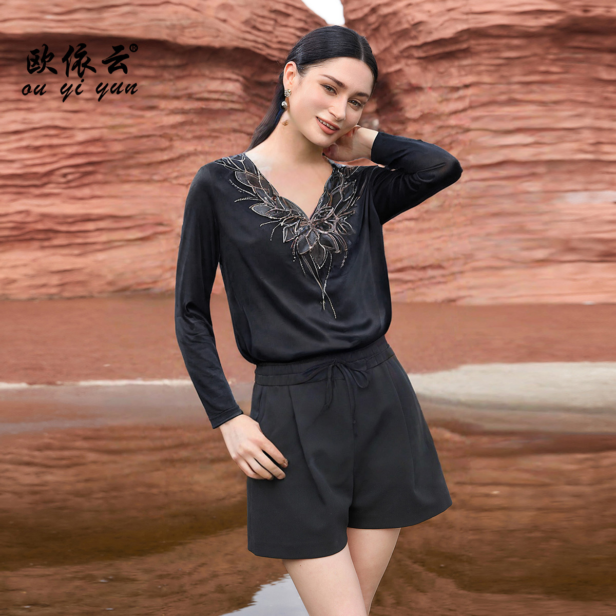 打底衫 欧依云中老年妈妈秋装 宽松显瘦洋气大码 短上衣2025新款 长袖