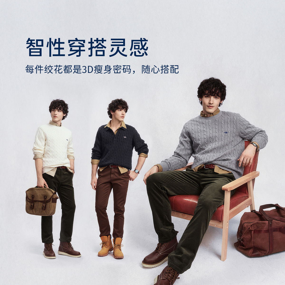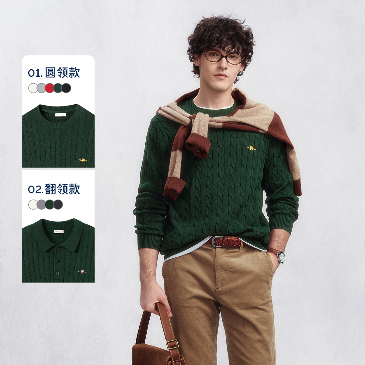 男士 甘特25秋冬新款 GANT 圆领毛衣纯棉翻领绞花针织衫 绞绞者