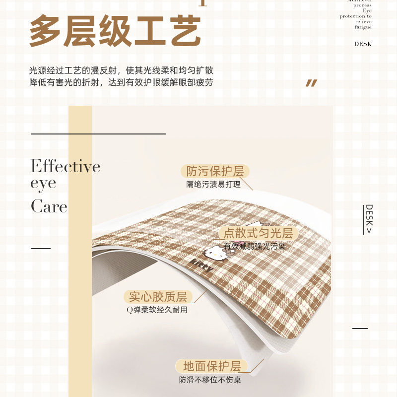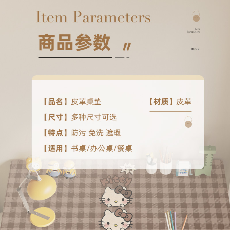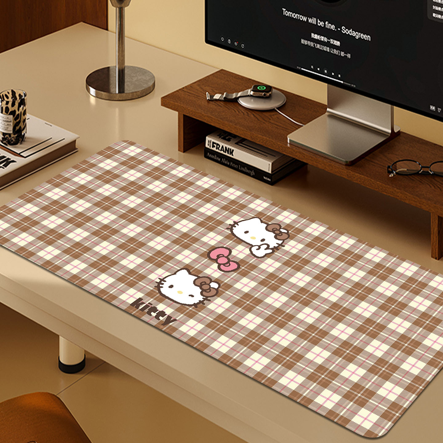 HelloKitty皮革鼠标垫超大号棕色凯蒂猫工位电脑键盘垫子防水防油