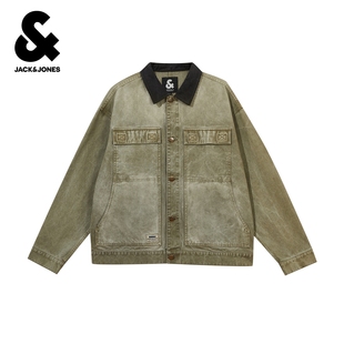 唐狮2025秋季 牛仔外套女巴恩风复古做旧潮牌宽松撞色翻领夹克 新款
