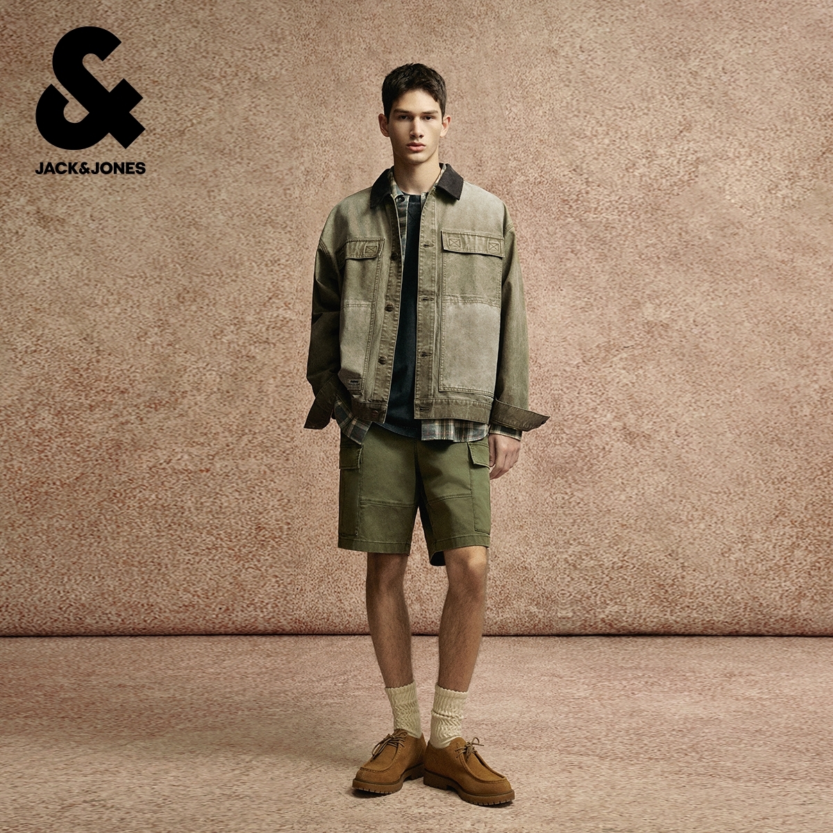森马外套女巴恩风短外套上衣秋季 拼接灯芯绒翻领夹克格纹复古风