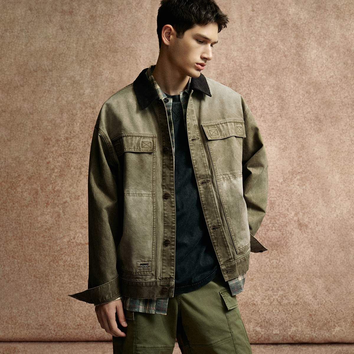 太平鸟男装 宽松通勤教练茄克立领哈林顿质感外套 行政夹克秋新款