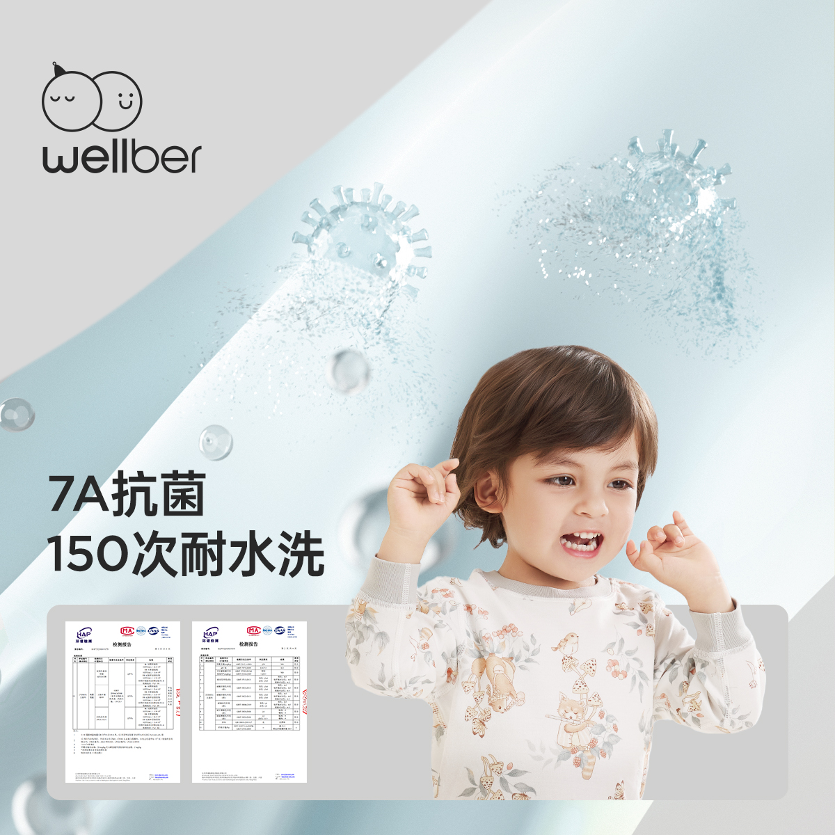 威尔贝鲁儿童内衣套装 婴儿保暖衣男女童睡衣 宝宝纯棉高腰秋衣秋裤