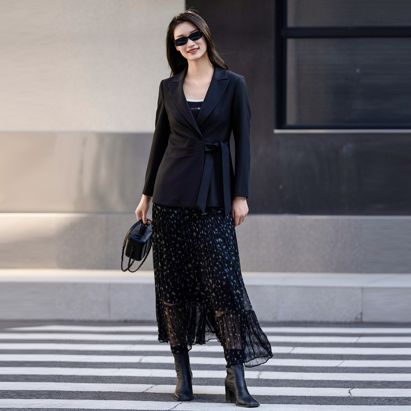 高腰梨型身材A字裙伞裙 半身裙百褶裙大码 胖mm显瘦百搭西装 中长款