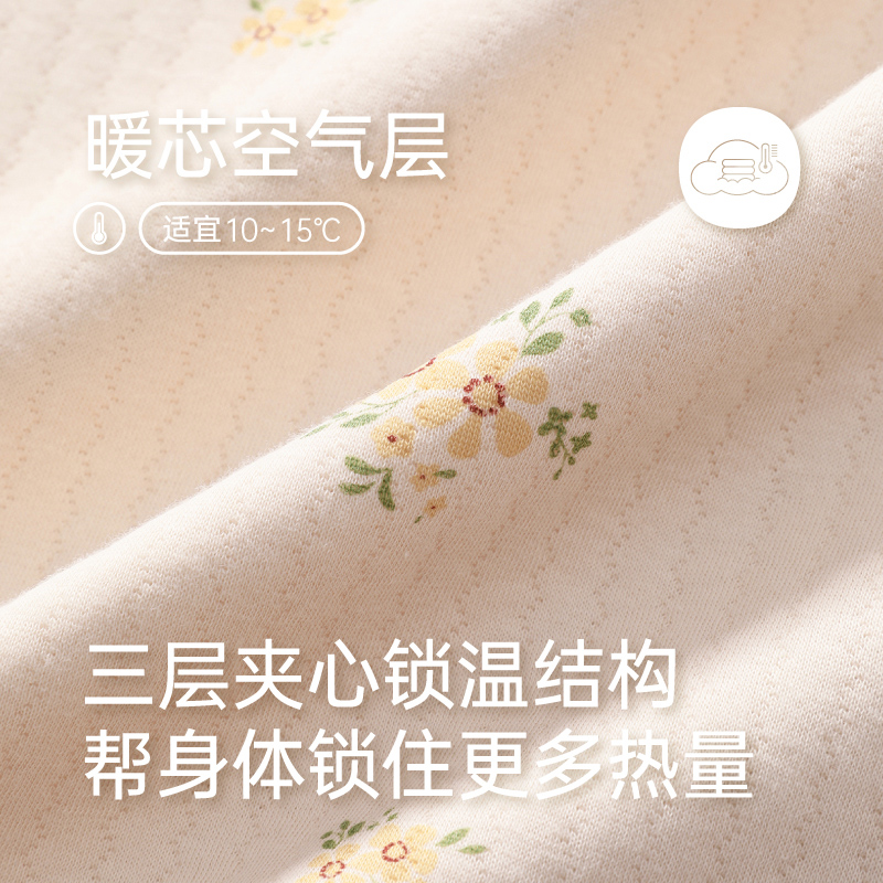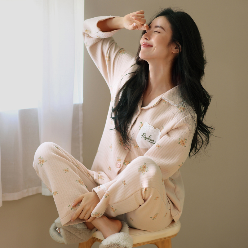 小香风外穿家居服可爱夹层套装 芬腾空气棉睡衣女秋季 纯棉加厚长袖