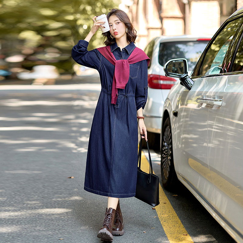 高档今年流行爆款 巨好看 2025新款 牛仔连衣裙女秋季 早秋披肩长袖
