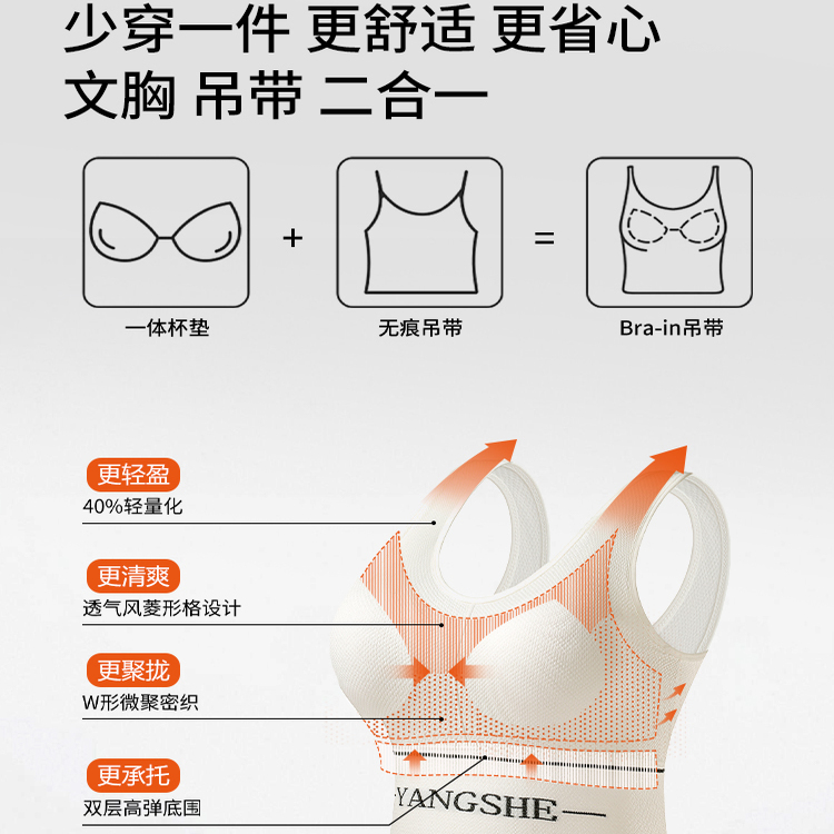 洋奢2025超火吊带美背运动背心文胸内衣一体式 防震瑜伽带胸垫百搭