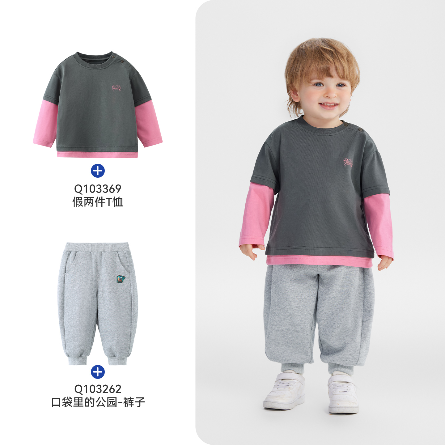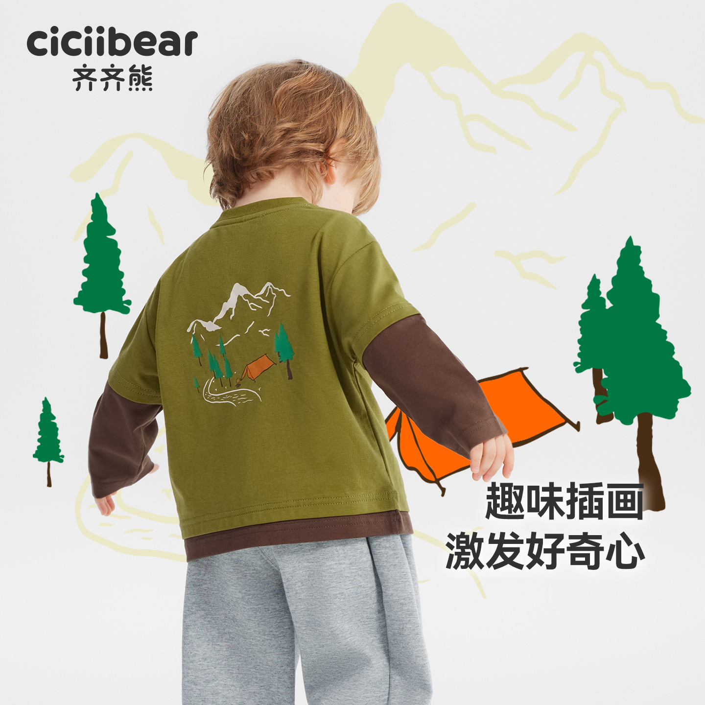 春秋款 齐齐熊男童t恤长袖 宝宝上衣儿童运动衣2025新款 户外速干
