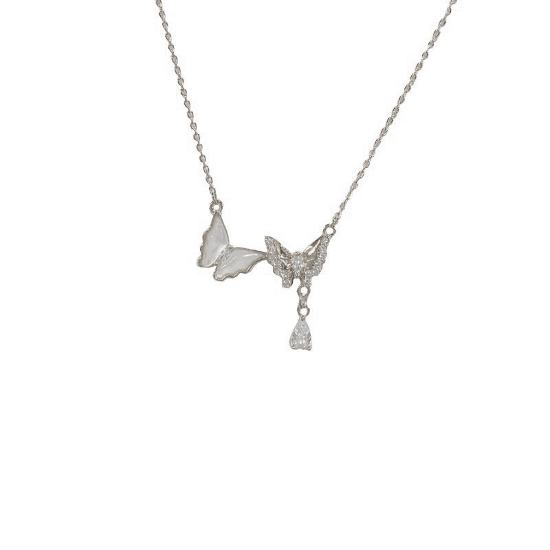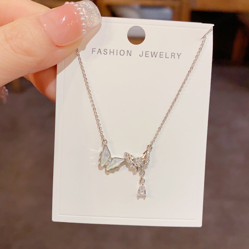 锁骨链 时尚 法式 轻奢银色贝母蝴蝶项链女网红简约潮流吊坠超仙个性