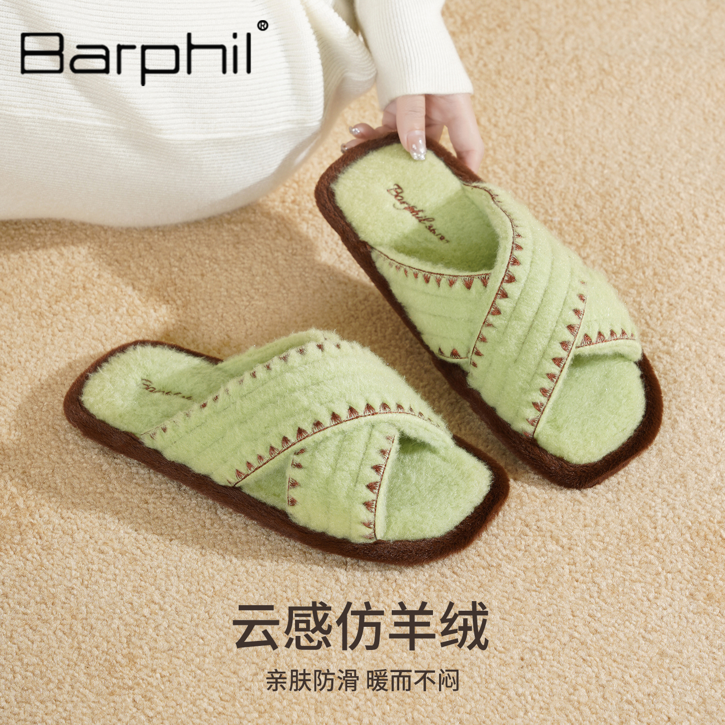 室内家居复古舒适柔软一字拖防滑百搭 秋季 Barphil拖鞋 女2025新款