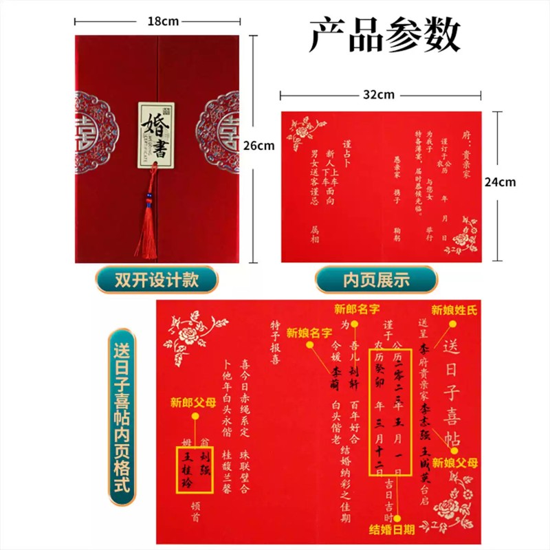 送日子书男方新款 硬壳手写婚书结婚订婚书下聘女方送好 2025款