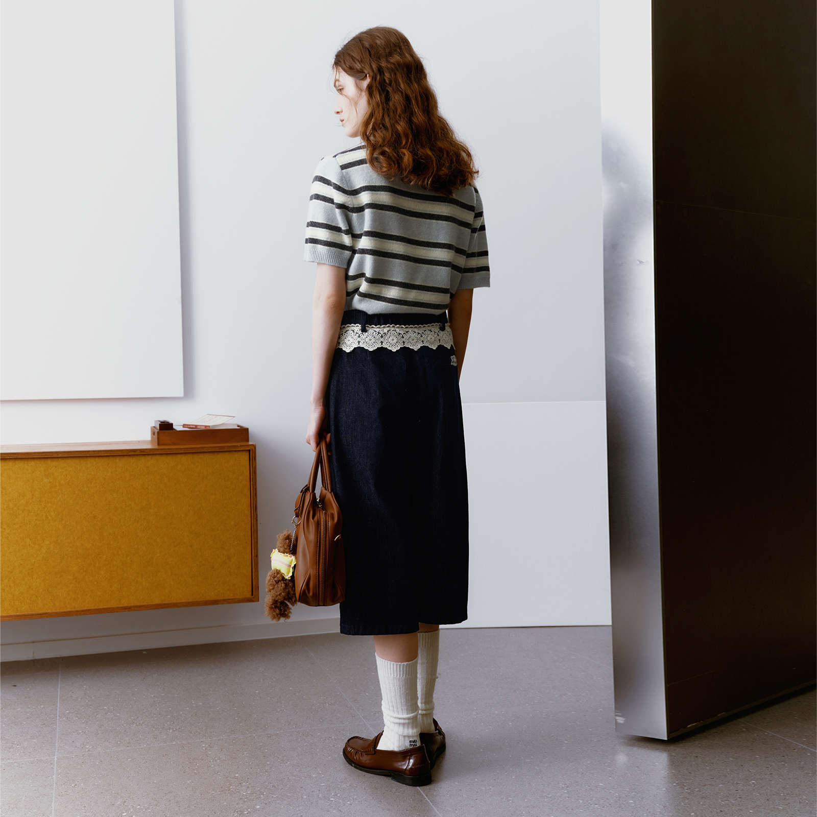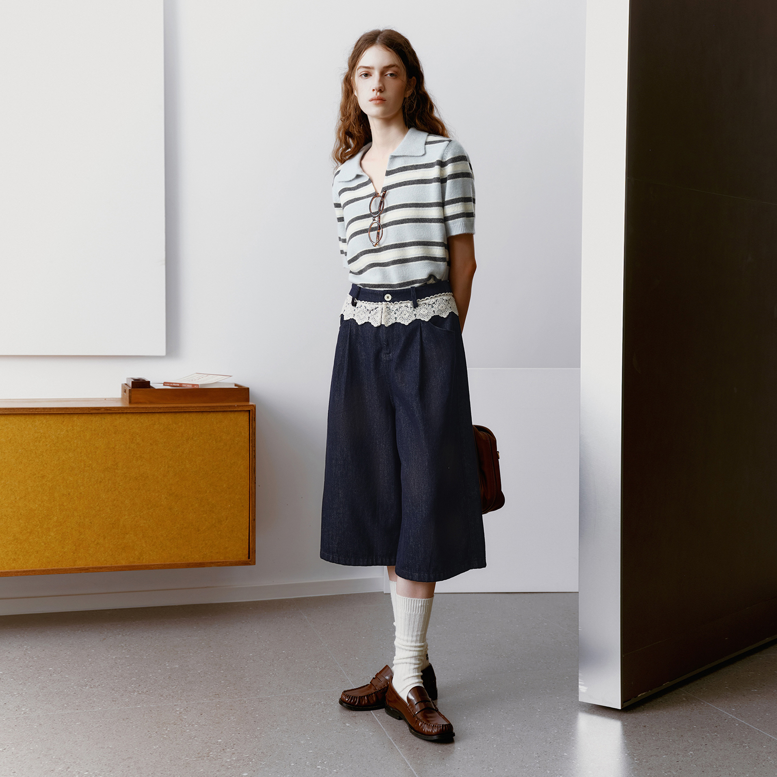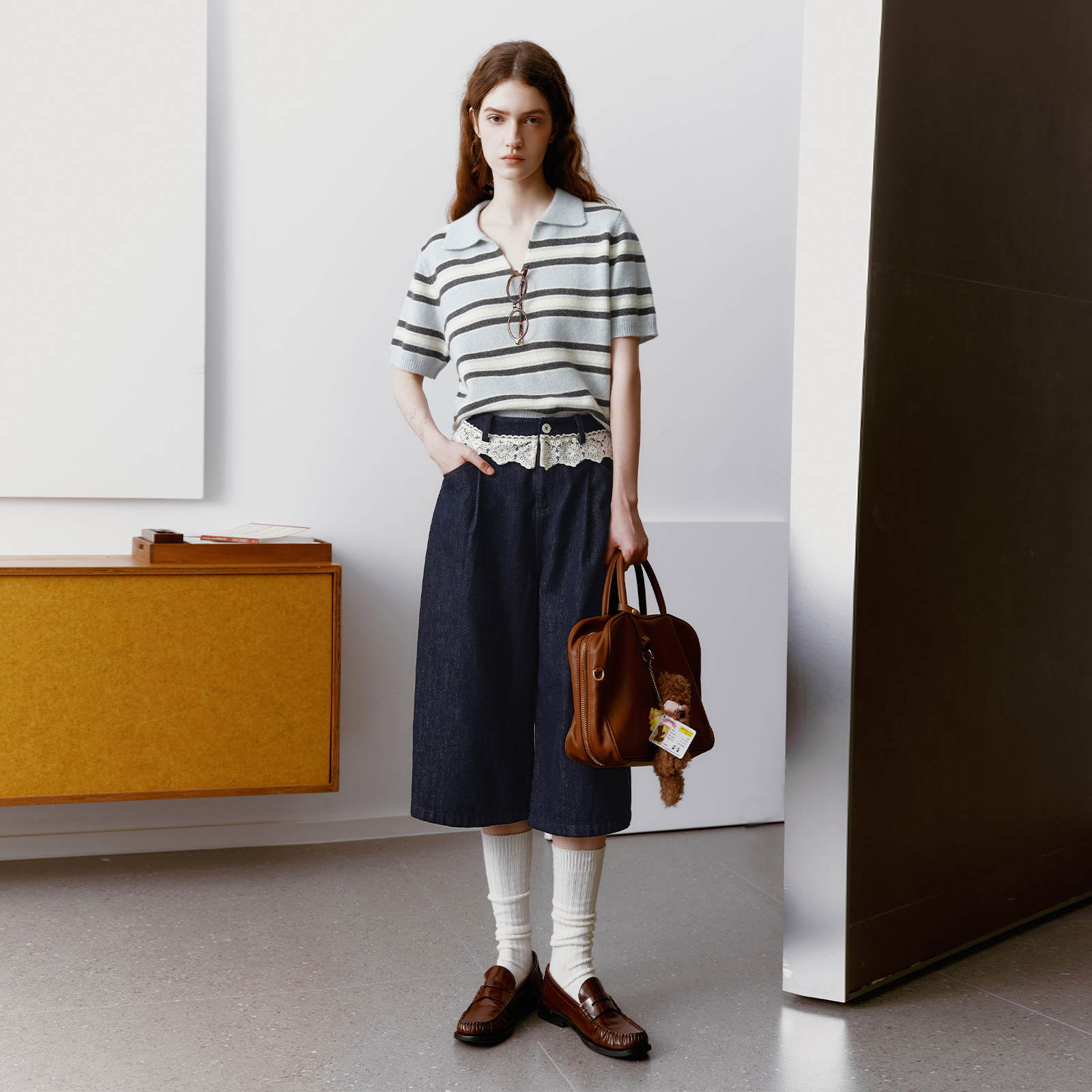 针织衫 条纹短袖 长袖 开衫 毛衣外套 RARN2025秋装 两件套圆领修身 新款