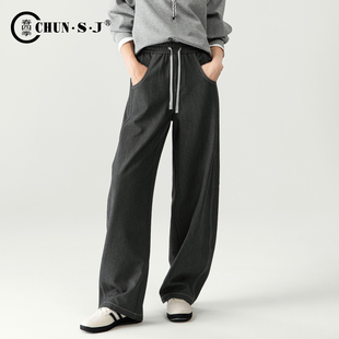 女春秋新款 休闲直筒慵懒松弛感裤 高腰垂感窄版 裤 子 西装 黑色阔腿裤