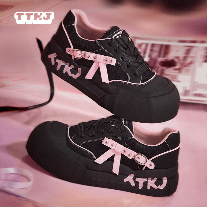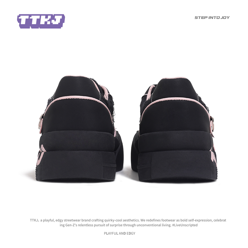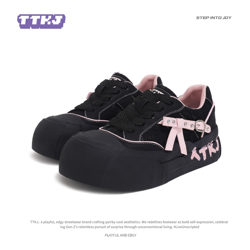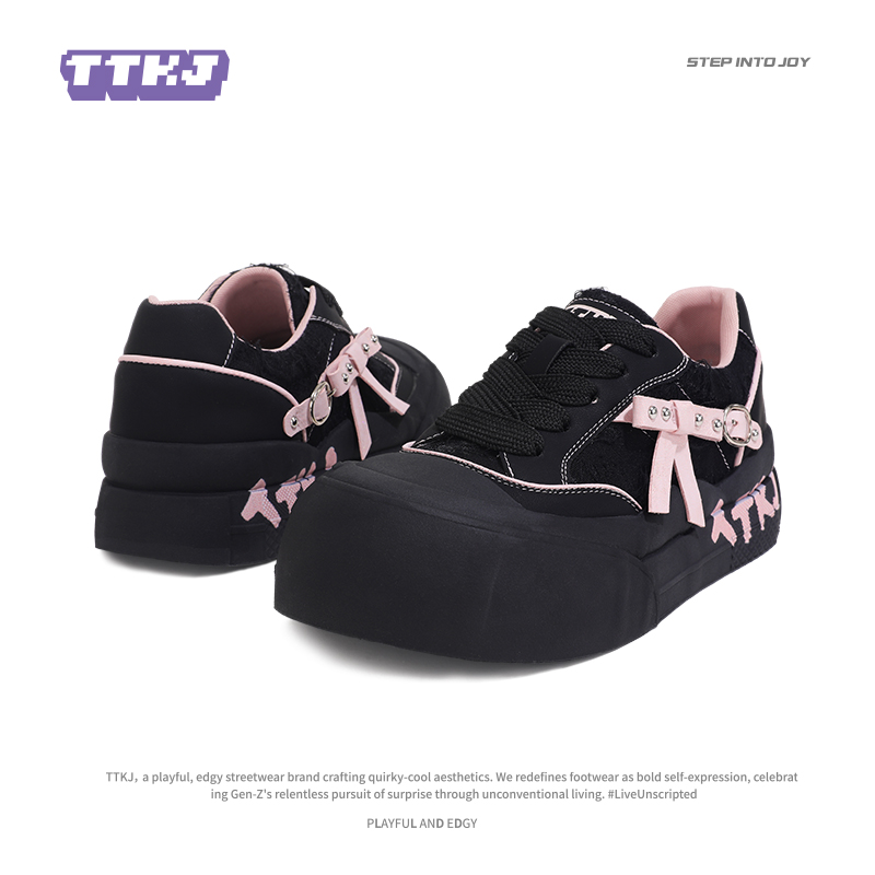 原创设计巨好看不累脚厚底增高潮酷女生板鞋 TTKJ黑粉色大头鞋 女鞋