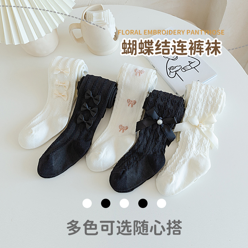 袜 纯棉女孩外穿连袜洛丽塔配裙子宝宝儿童连裤 女童打底裤 春秋薄款