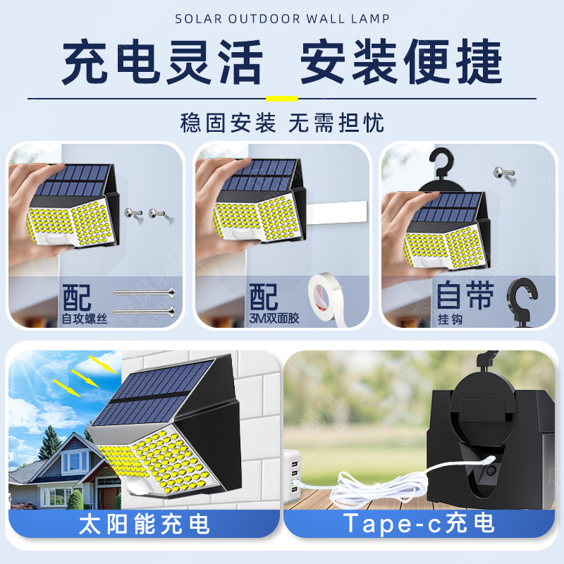 太阳能庭院户外灯家用照明防水室外人体感应路灯农村院子阳台壁灯