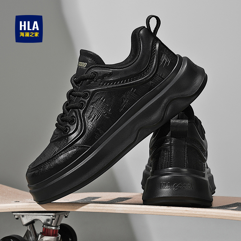春秋季 子厚底增高潮鞋 透气休闲板鞋 高级感鞋 男款 海澜之家黑色男鞋