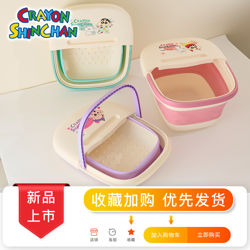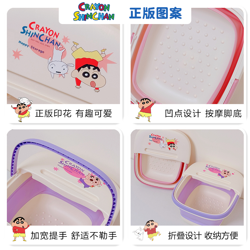 正版 蜡笔小新可折叠泡脚桶儿童专用洗脚盆家用手提便携宝宝泡脚盆